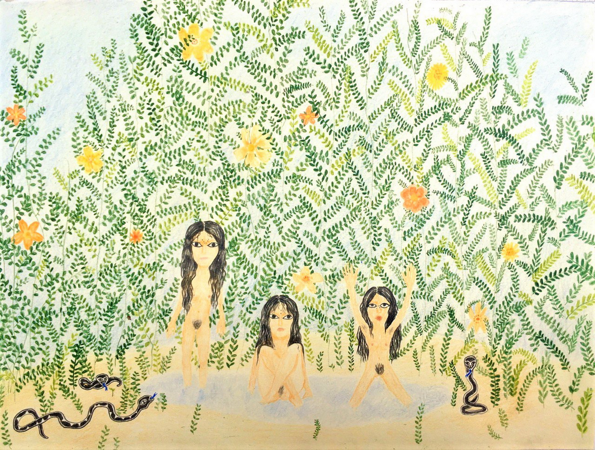 Her artistic practice spans drawing, painting, and sculpture, exploring the meeting point between intuition and ritual while often engaging with— and subtly subverting—traditional narrative and symbolic frameworks.