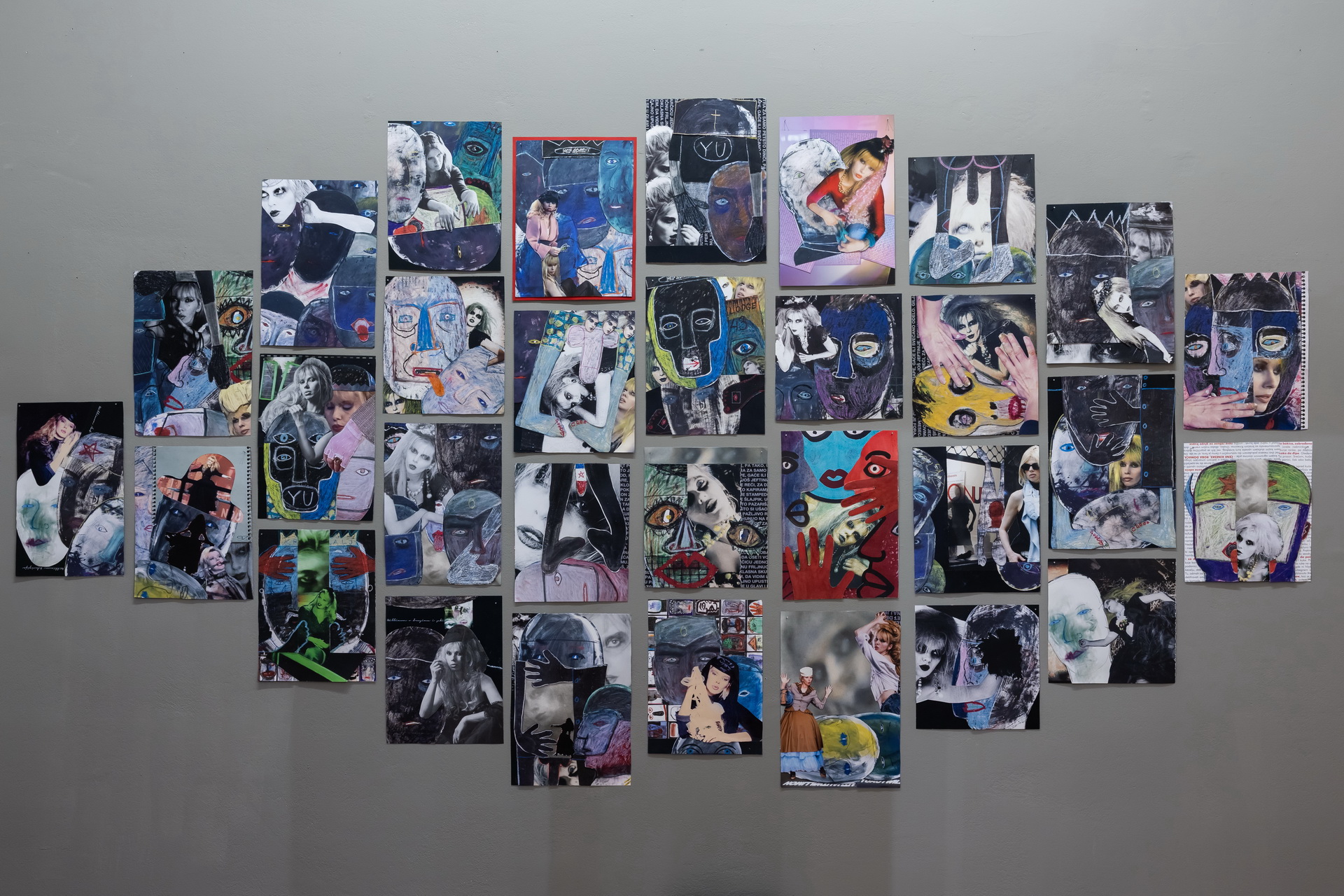 The second unit, a series of collages titled “Gallery of Secrets,” does not serve merely as an introduction to her media work. In each collage the artist uses her own face — recognizable to the public — subjecting it to expressive, at times almost violent and provocative treatment. The title alludes to her original TV programs, conceived as a form of televised happening in which the conventional talk-show format was subverted by artistic interventions taking place live before the viewers’ eyes. Through this cycle, Willimon reopens the question of boundaries — personal, but also those where art and everyday life meet.
